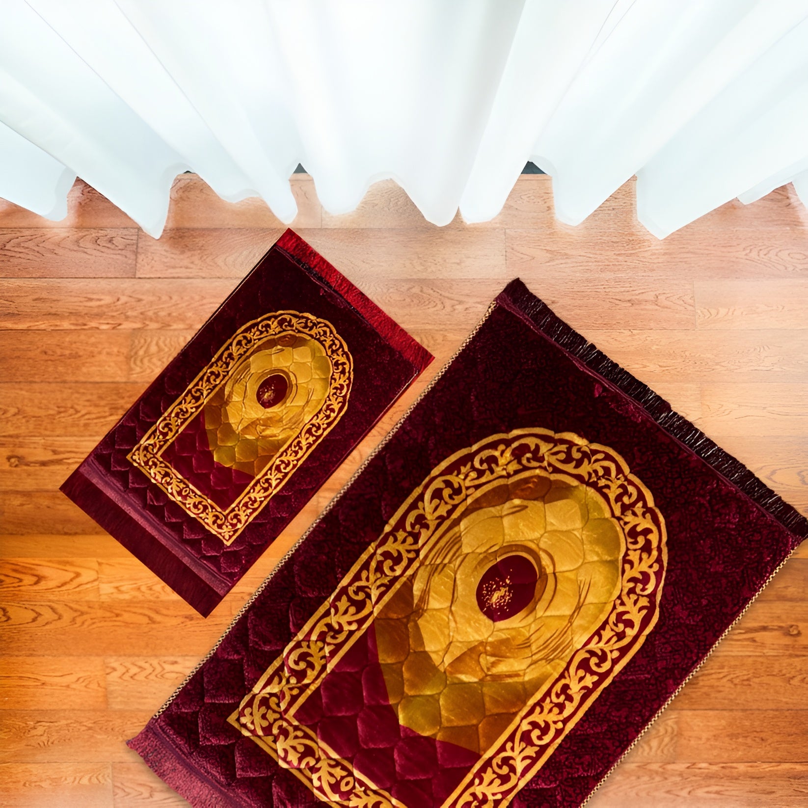 The Twin Pack Prayer Mat Bundle is a matching set that includes one adult Golden Series prayer mat and one kids prayer mat in the same design. Made with soft padded fabric and detailed finishing, both mats are lightweight, durable, and comfortable for daily use. This prayer mat bundle for parents and kids is a thoughtful way to encourage children in prayer while keeping the family connected with a matching look.