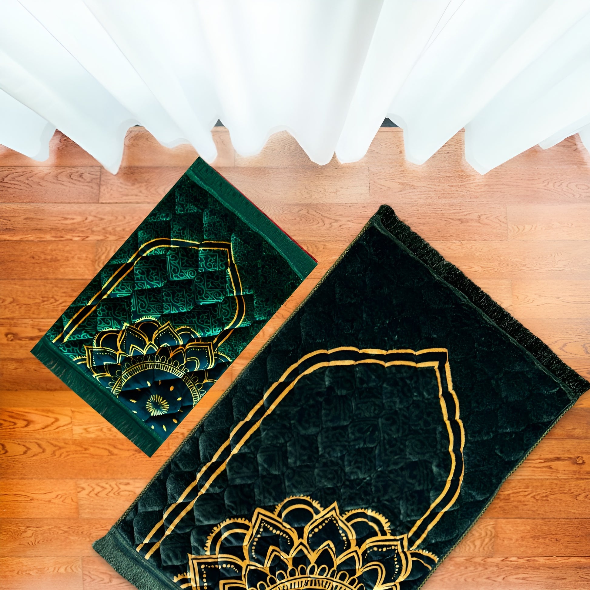 Crafted with premium quality and extra space, this mat offers ultimate comfort for every salah. Its elegant design adds a touch of luxury to your prayer experience.