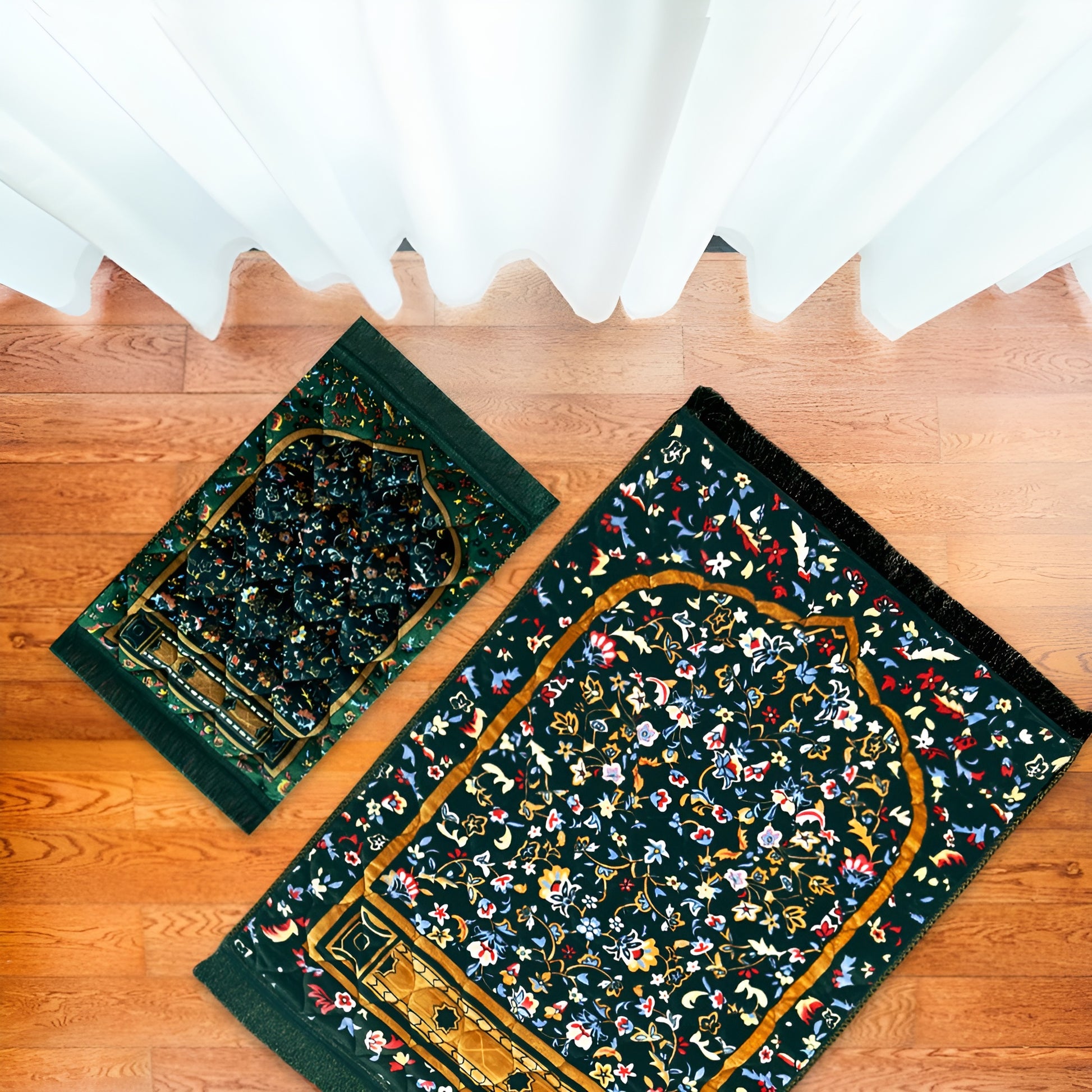 The Twin Pack Prayer Mat Bundle is a matching set that includes one adult Golden Series prayer mat and one kids prayer mat in the same design. Made with soft padded fabric and detailed finishing, both mats are lightweight, durable, and comfortable for daily use. This prayer mat bundle for parents and kids is a thoughtful way to encourage children in prayer while keeping the family connected with a matching look.
