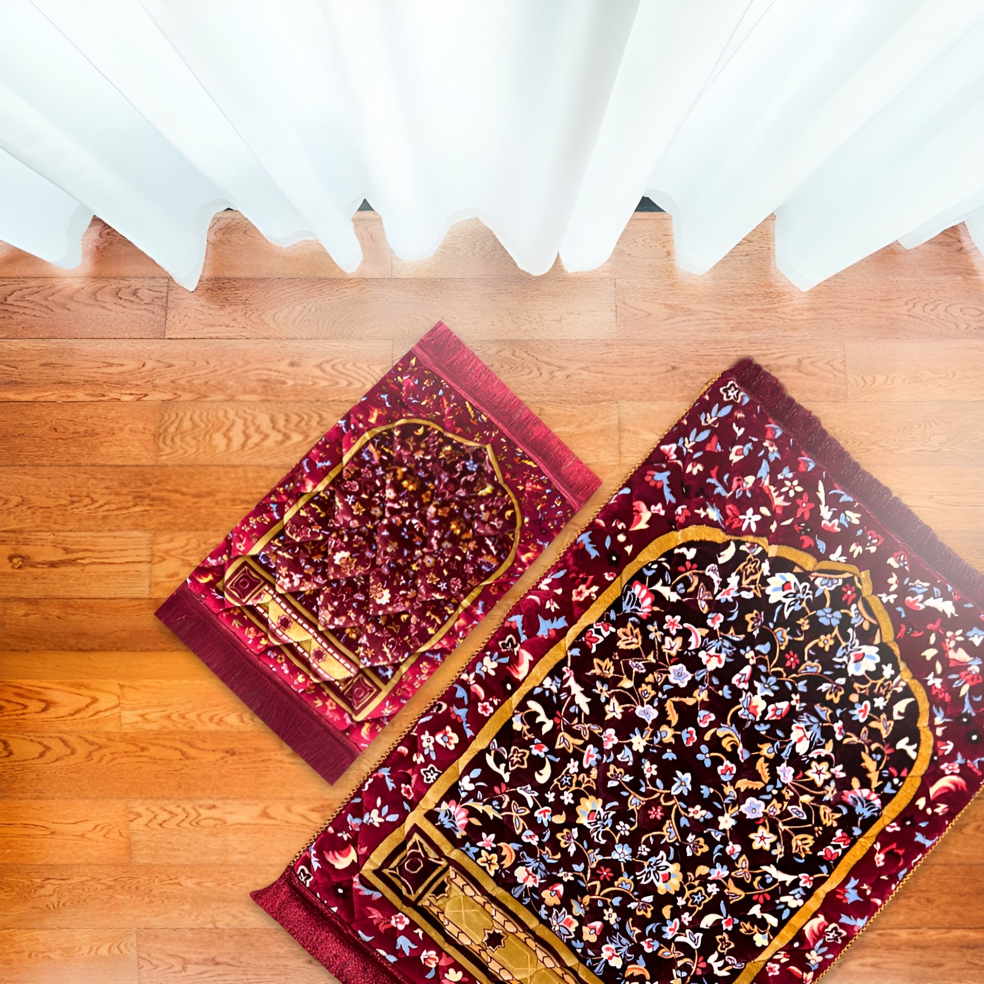 The Twin Pack Prayer Mat Bundle is a matching set that includes one adult Golden Series prayer mat and one kids prayer mat in the same design. Made with soft padded fabric and detailed finishing, both mats are lightweight, durable, and comfortable for daily use. This prayer mat bundle for parents and kids is a thoughtful way to encourage children in prayer while keeping the family connected with a matching look.
