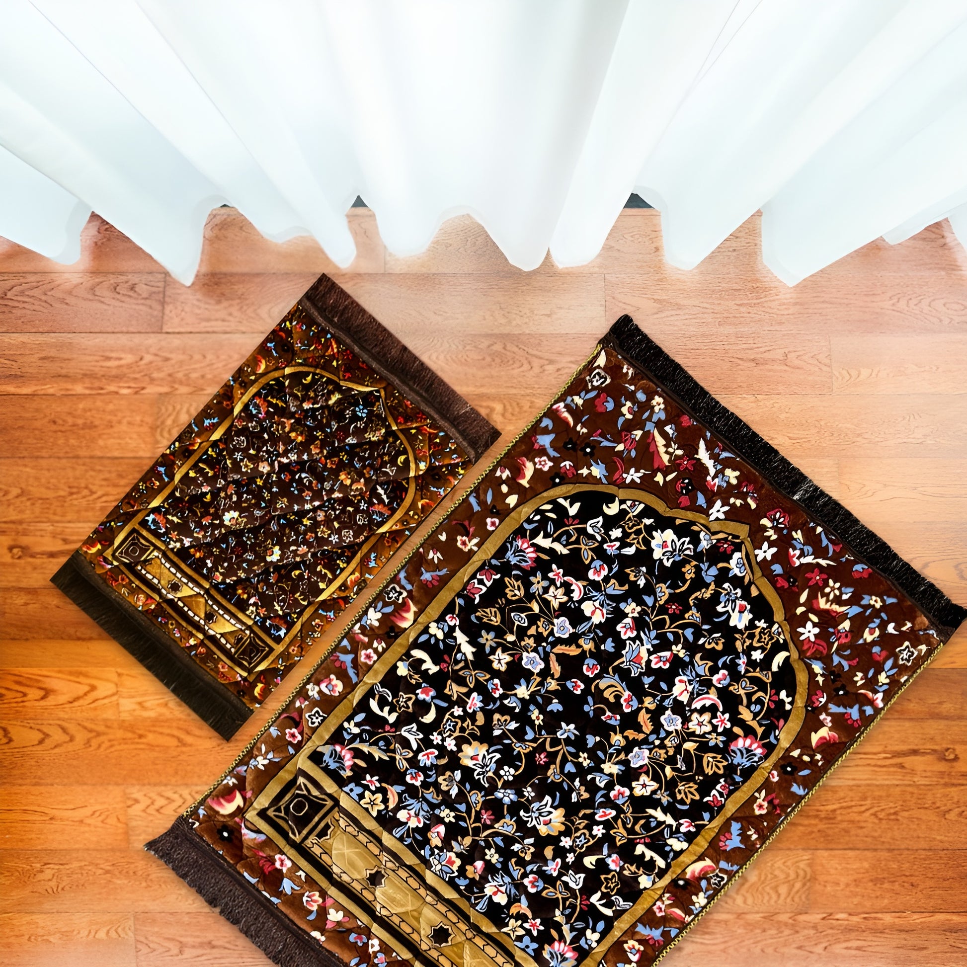 The Twin Pack Prayer Mat Bundle is a matching set that includes one adult Golden Series prayer mat and one kids prayer mat in the same design. Made with soft padded fabric and detailed finishing, both mats are lightweight, durable, and comfortable for daily use. This prayer mat bundle for parents and kids is a thoughtful way to encourage children in prayer while keeping the family connected with a matching look.